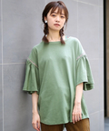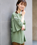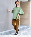 パッと目を引くフレアスリーブはひらひらと動きのあるシルエットと腕の細見せ効果を実現しました。