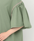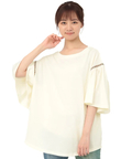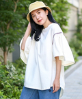 ふんわりスリーブで細見せ、刺繍入りトップス