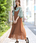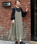 アースカラー×小花柄が優しい雰囲気のキャミワンピース