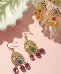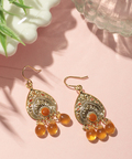 ゴールドパーツにぷっくりとしたしずく型パーツを組み合わせたピアス