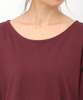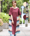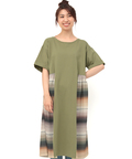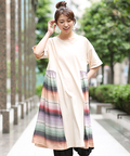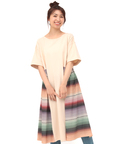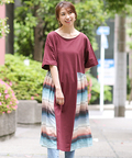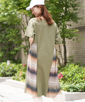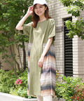 ベーシックなTシャツワンピースのサイドに、さらりとした柄の異素材を組み合わせることで、ふわっと華やかな女性らしい印象に。