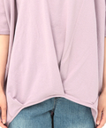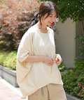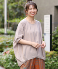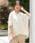 ボディラインを包み込んでくれるようなゆとりあるシルエットが、女性らしい優しげな雰囲気に。