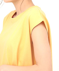 シンプルなクルーネックにフレンチスリーブ、サイドポケットなども無くスッキリとしたデザイン。