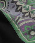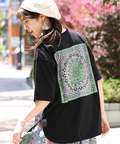 マンダラ風モチーフをバックプリントに用いて、エスニックな雰囲気を醸し出しています。