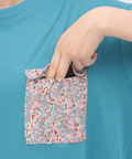 胸元には、大き目のフラップ付きポケットが付いていて、柄デザインがアクセントに◎