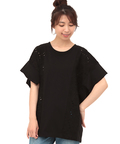 大きなアームホールと袖を被せたようなデザインで、二の腕の細見え効果も◎