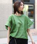 ビッグシルエットかつレースの切り替えデザインが、一枚でキマる万能トップスです!