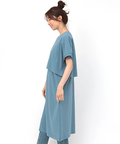 同じカット素材をレイヤードしたかのような、1枚でワントーンコーデが楽しめるアイテム。