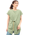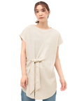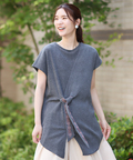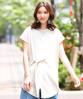 フレンチスリーブとラウンドヘムで単調にならず、大人っぽい着こなしに。
