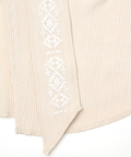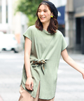 ウエスト部分についたさりげない刺繍入りのリボンを結べばスッキリとキレイなラインを出してくれます!