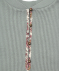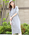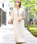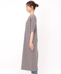 ボタンと小花柄のパイピングがポイントのすっきりとした印象のヘンリーネックワンピース。