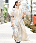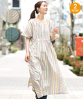 2WAY手織りストライプワンピース