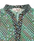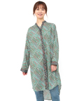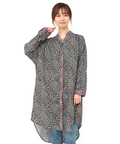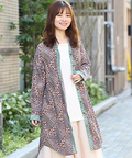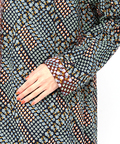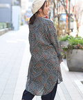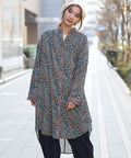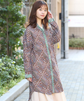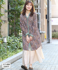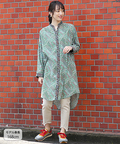 ほんのりレトロな幾何学×フラワー柄のドルマンシャツワンピース