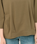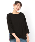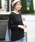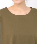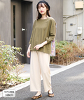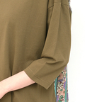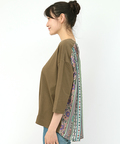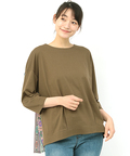 前身頃は綿入りのカットソー素材、柄部分はシボ感のあるふんわりとした素材で女性らしい印象に。