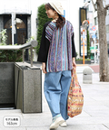 ナバホ柄とレトロ感ある花柄をストライプ状にミックスしたオリジナルプリント使用!