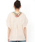 背中でクロスしたカラフルなエスニック柄の紐がアクセントになった1枚☆