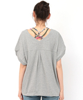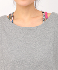 ネックからチラリと見える紐が可愛いレイヤード風プルオーバー