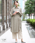 ボタンを閉じてワンピースとして着るのはもちろん、前開きで羽織りとしても活躍してくれる優れもの◎