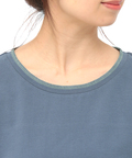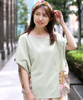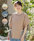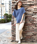 ゆったりとしたドルマンスリーブに、配色ステッチ入りの抜け感のあるネックラインがこなれ感のポイント♪