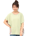 背中の柄生地がフロントにかけて包み込み立体的で、女性らしくふんわりとしたシルエットになっています。