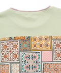 後ろ姿だって可愛く、色鮮やかタイル柄に心惹かれるトップス
