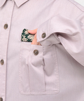 シャツ部分はほんのりとした光沢感とハリのあるシャンブレー生地を使用し、大人なきちんと感をプラス。