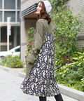 シャツワンピースにボタニカルなペイズリー柄を組み合わせました。