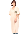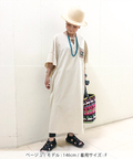 チチカカ |フェアトレードコットンミニ裏毛ポケット刺繍ワンピース ベージュ