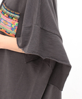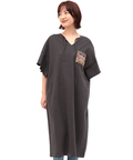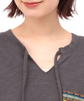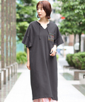 チチカカ |フェアトレードコットンミニ裏毛ポケット刺繍ワンピース チャコールグレー