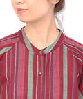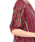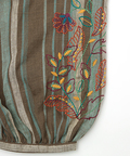 マルチストライプに南米のお花をモチーフにした刺繍を、袖にプラスしたデザイン。