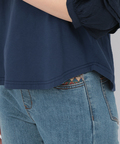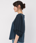 袖部分は布帛(フハク)を使用し、ふんわり軽いシルエットで女性らしい印象に◎