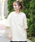 ドロップショルダーに大きなアームホールの作りが、ラフさを強調◎