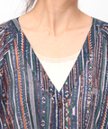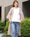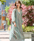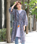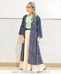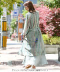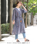 この製品はファッション性を重視し、ブロックプリント(ブロック状のハンコに染料を浸し一つ一つ手でプリント)を施しています。そのため色むらがあり、一着ごとに色や風合いの仕上がりが異なります。手作りの風合いをお楽しみ頂き、ご了承下さい。
