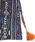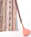 ネイティブアメリカンの織るラグのキカ柄をモチーフに、ストライプ状のブロックプリントにアレンジしたチチカカオリジナルテキスタイル。