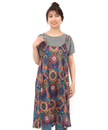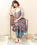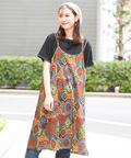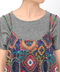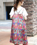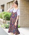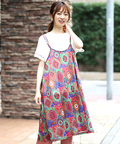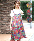 パッと鮮やかなオーナメント柄が美しいキャミワンピース