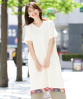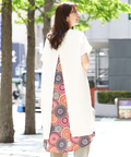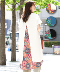 フラワーサークル柄の異素材コンビがコーディネートのアクセントになり、一枚でもサマになるアイテム◎