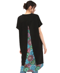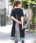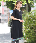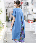 背中の花柄がコーデを飾る、柄コンビワンピース