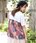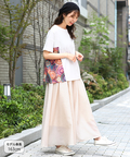 フラワーサークル柄の異素材コンビがコーディネートのアクセントに◎