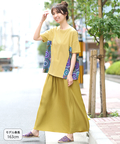 デニムなどボトムス合わせはもちろん、丈を少し短めにしているのでスカートもすっきりと合わせられます。
