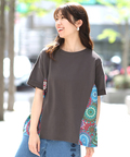 背中の花柄がコーデを飾る柄コンビプルオーバー