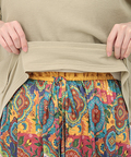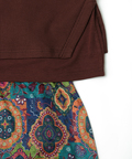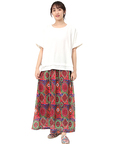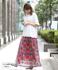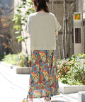 スカートには、草花やオーナメントを散りばめ、パッチワークのような柄デザインに仕上げました。