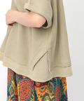トップスはシンプルでありながらも、表情のあるサーマル地にドロップショルダーとぬけ感を感じられるデザイン。