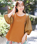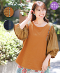 袖部分は布帛(フハク)を使用し、ふんわり軽いシルエットで女性らしい印象に◎