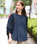 チチカカ |ギャザースリーブプルオーバー(大きいサイズ) ネイビー