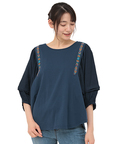 ネイティブ刺繍がアクセントのふんわりスリーブプルオーバー