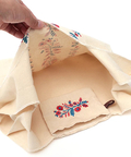本体はプリント、折りたたんだ時に見えるポケットにはワンポイントの刺繍入り。