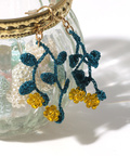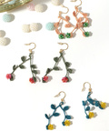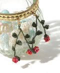 刺繍糸で葉っぱの部分を、ビーズで実の部分を表現した繊細で可愛らしいデザイン。