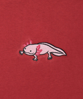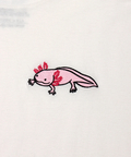 胸元には刺繍で、袖にはプリントで愛くるしい表情のウーパールーパーを表現しました。