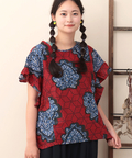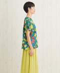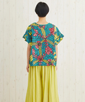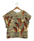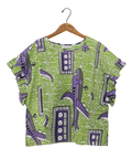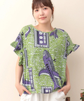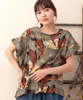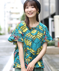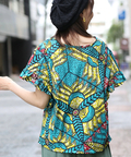 目を惹くアフリカン柄と袖のフリルがポイントのプルオーバー