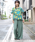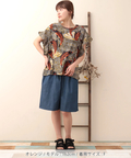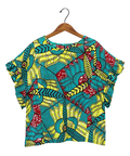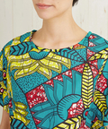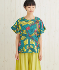 目を惹く鮮やかなアフリカンプリント柄を主役に、デニムなどシンプルなボトムスを合わせるのがおすすめ。